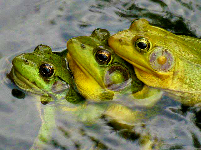 La grenouille verte, la grenouille léopard et les ouaouarons pondent à partir de la mi-juin. Les têtards passent l'hiver sous la glace et ont leur pattes au printemps suivant.